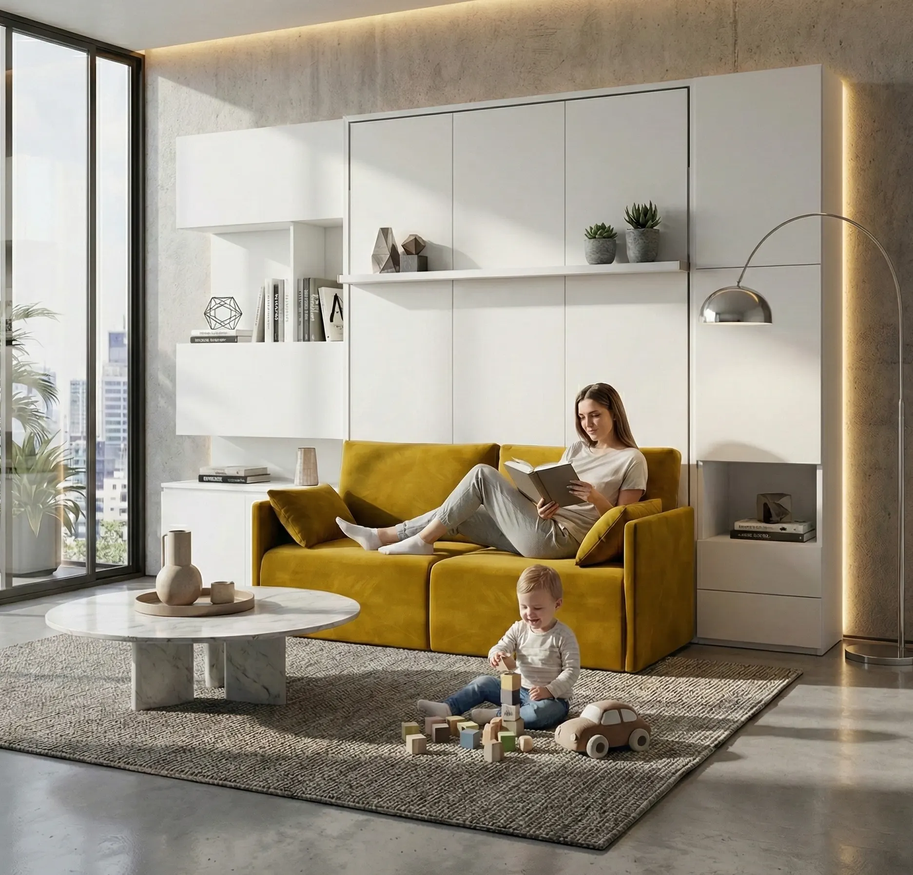 Lernen Sie Möbel kennen, die sich jeder Tageszeit anpassen. Verwandeln Sie Ihren Raum tagsüber in einen großzügigen Arbeitsbereich oder ein stilvolles Wohnzimmer – und nachts in Sekundenschnelle in ein komfortables Schlafzimmer.