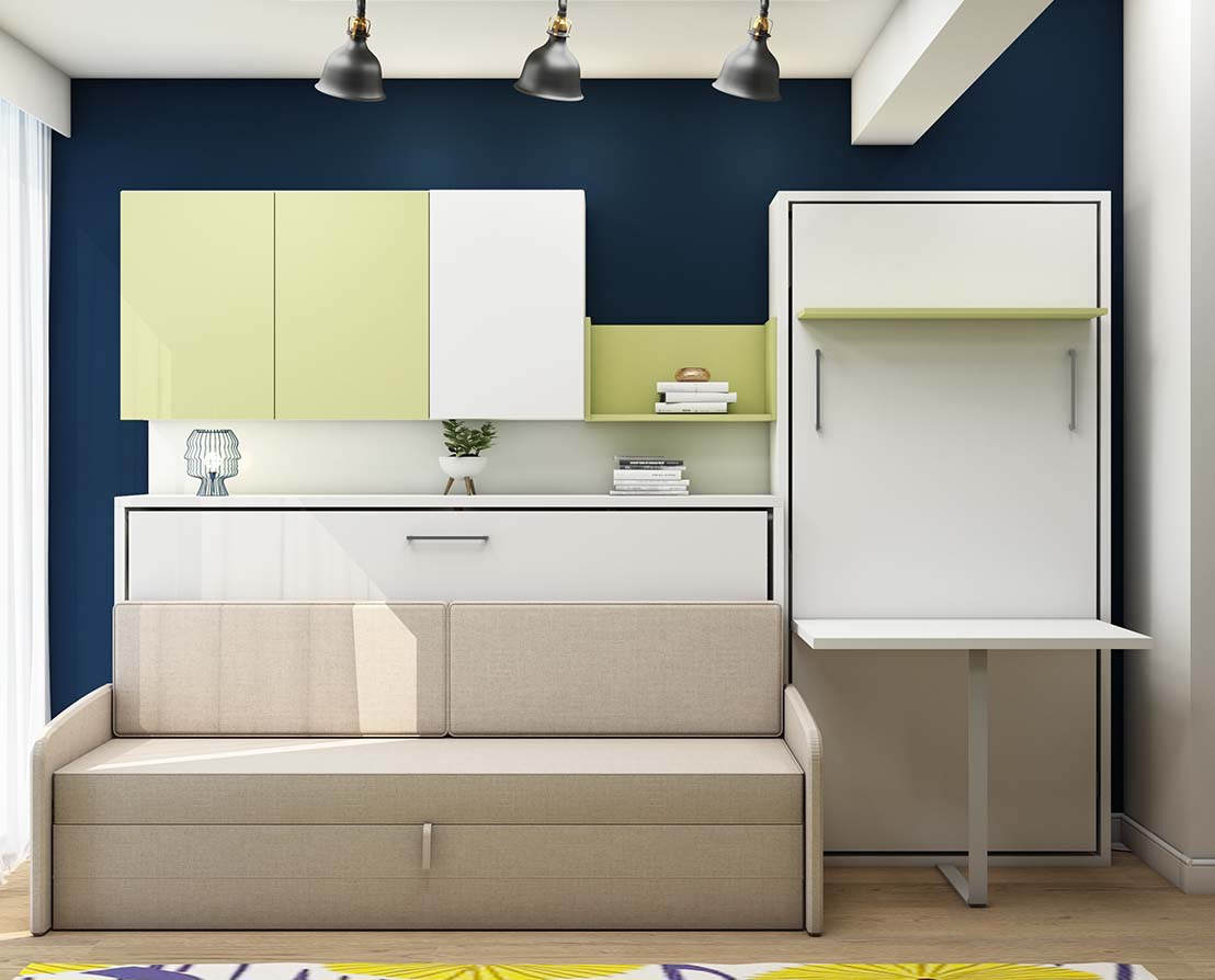 Klappbares Wandbett mit Schreibtisch (Aluminiumrahmen)